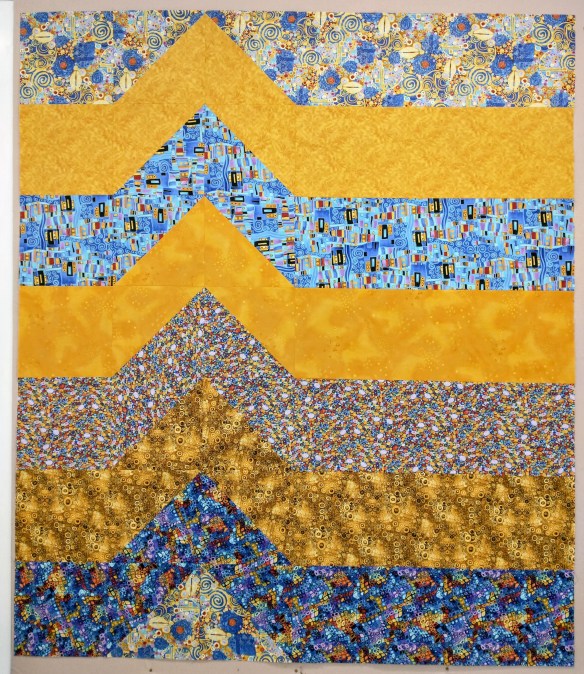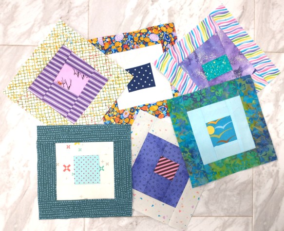 I got this design idea from a Zen Chic quilt and made this to use up scraps. I store my scraps as strips cut to uniform widths, so this was fast.