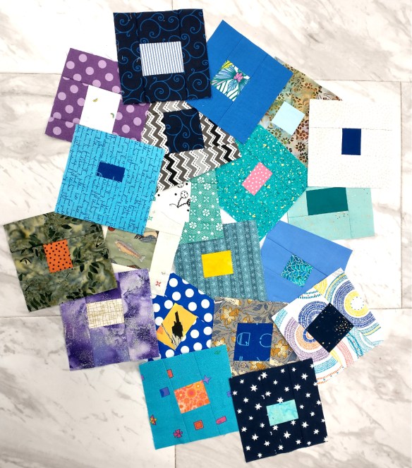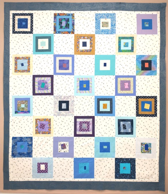 I started Karla Alexander’s Blue Onion quilt but really hated her process, so I made only a few blocks and used them as the focus of this quilt.