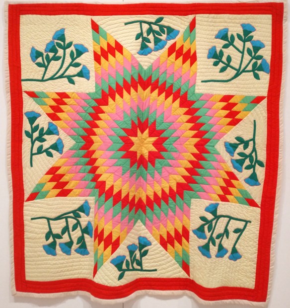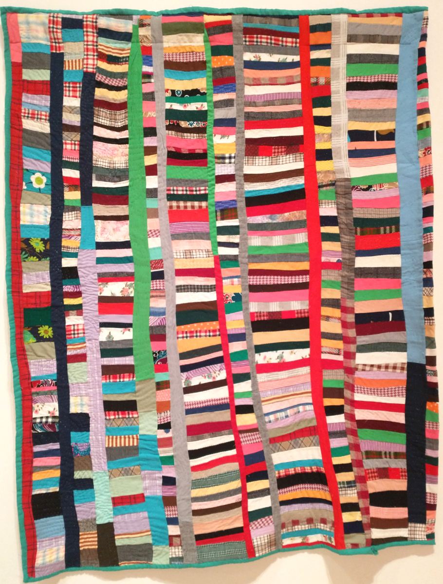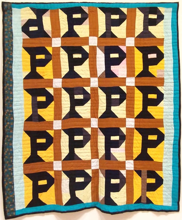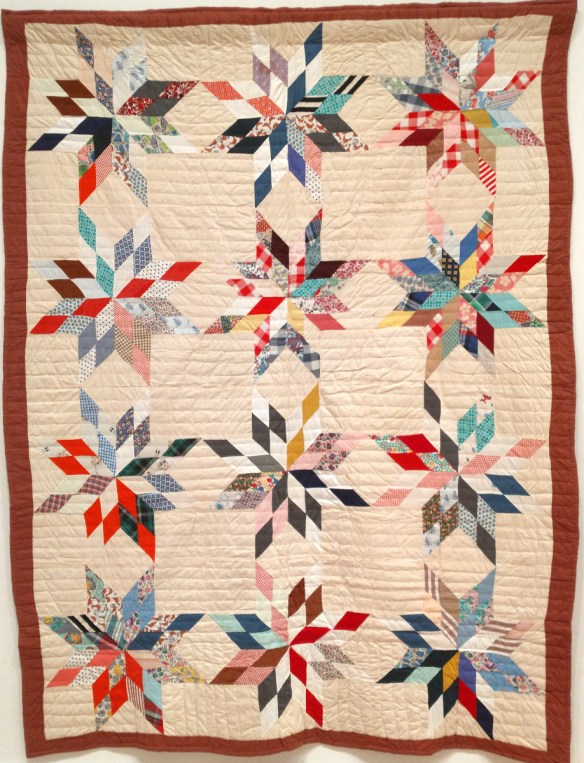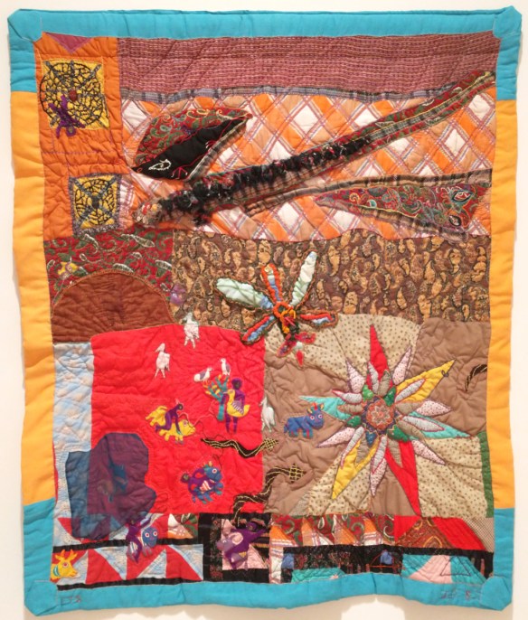 A lot of things about these quilts make the usual “improv” modern quilts look stilted and over-planned. The quilts in this exhibit seem so free by comparison. I think it’s another hint to me to “lighten up”.
