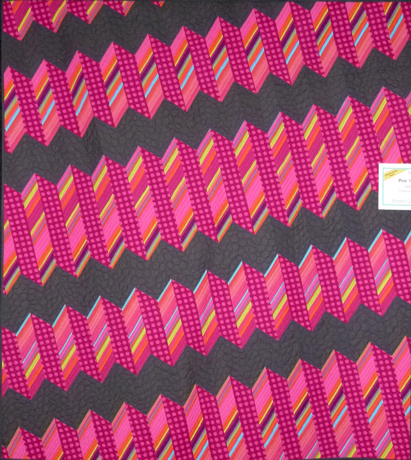 This quilt by Jean Larson won the Original Design award in the Modern Quilt Challenge! The Modern Quilt Challenge exhibit was on display at AQS Charlotte as well as other shows during the year.