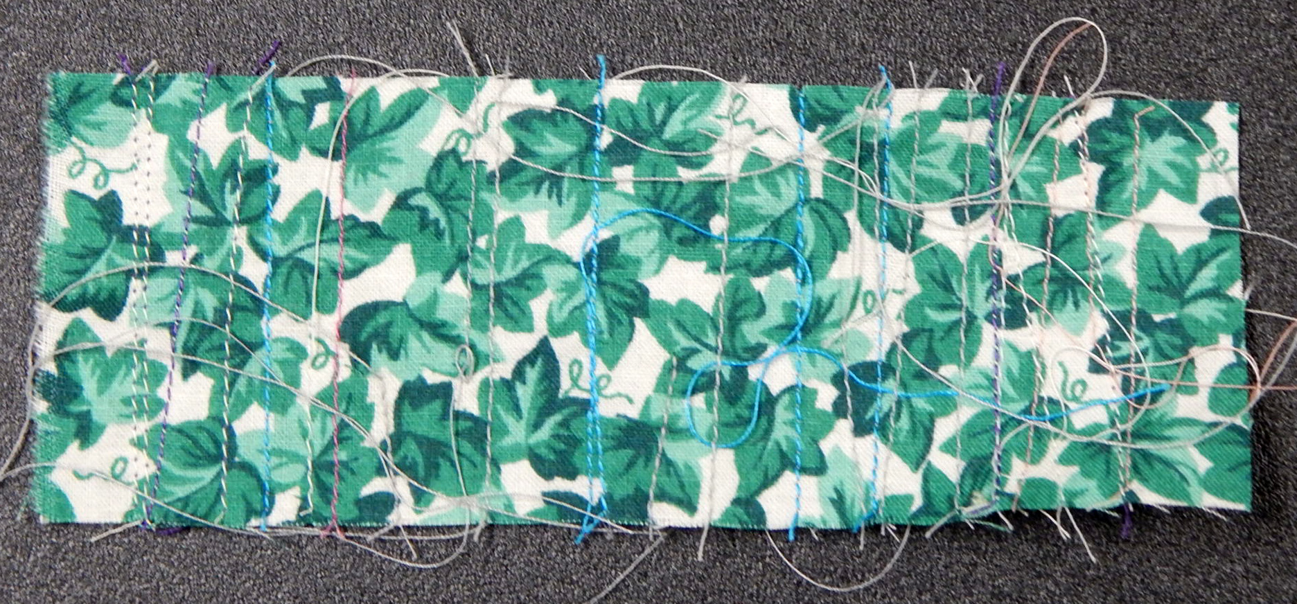 Finally (after buying basting spray) it was basted and I started quilting. Enter Lesson 2: this linen is a loose weave of large fibers and doesn’t play well with a tight weave of small fibers. YIKES AGAIN! No matter how I changed the pressure on the quilting foot or otherwise fiddled with it, the quilting distorted the top and the backing.