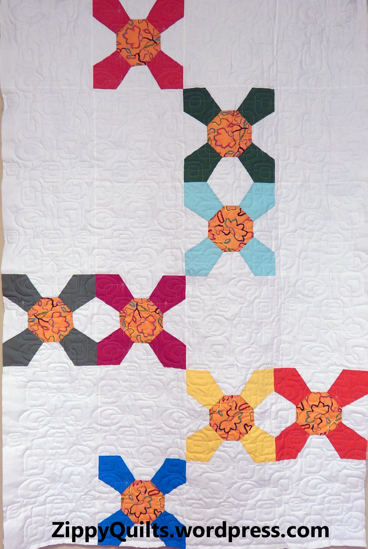 .And here’s a second quilt made with the same feature blocks, arranged differently. (The solids are Michael Miller Cotton Couture left over from another project.) You can get the templates from the magazine and make your own blocks, arranging them to suit yourself.