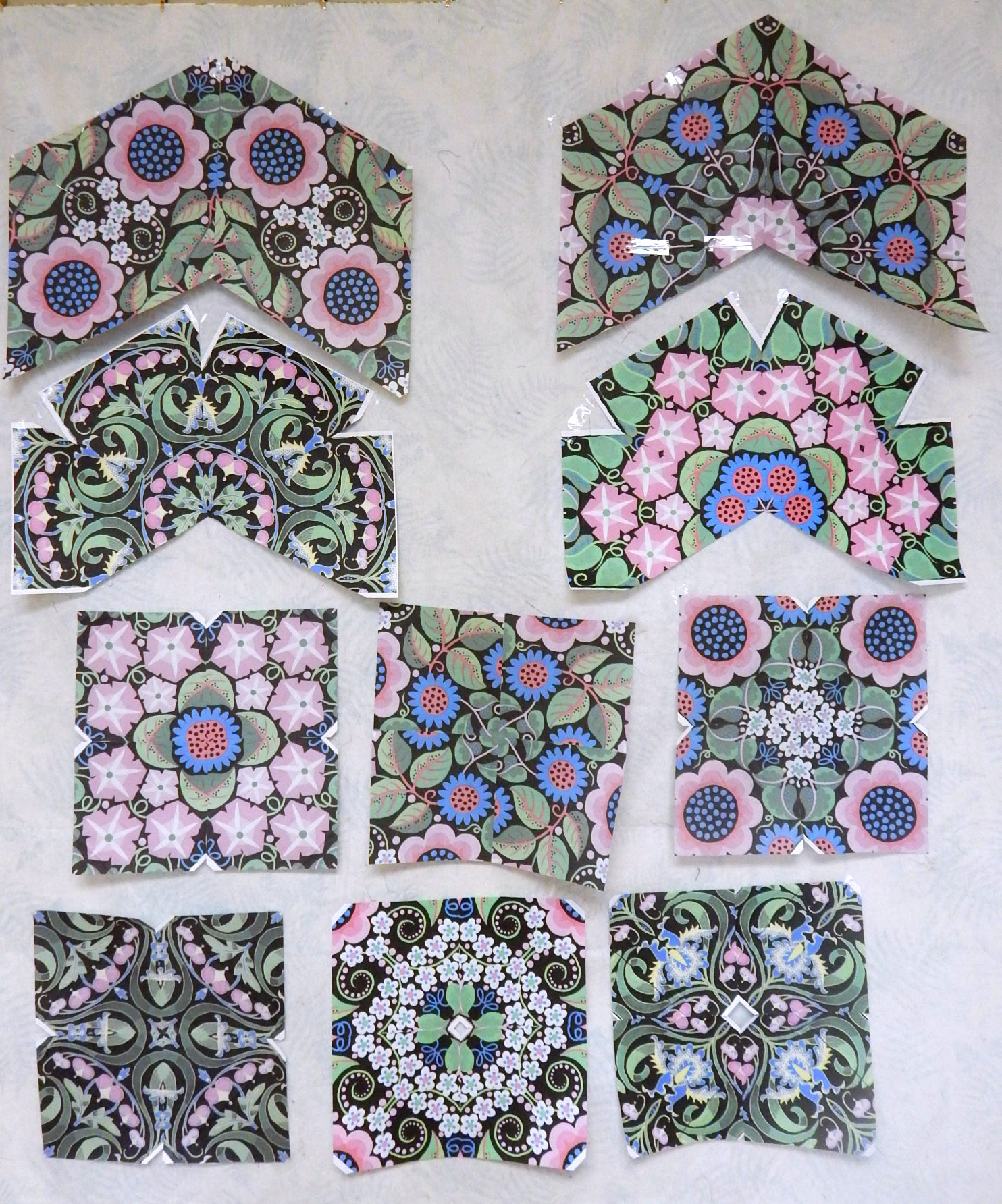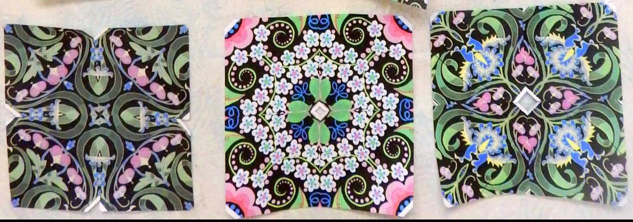 The Back-up Plan (must have one!) is all 4-patch kaleidoscopes if it turns out I don’t have enough fabric for both the 6-wedge and the 4-patch designs. That would be fine, too, though I like the variety of sizes in the design I’ve chosen. (Will I like it as much when I’m trying to sash those varied shapes and sizes?)