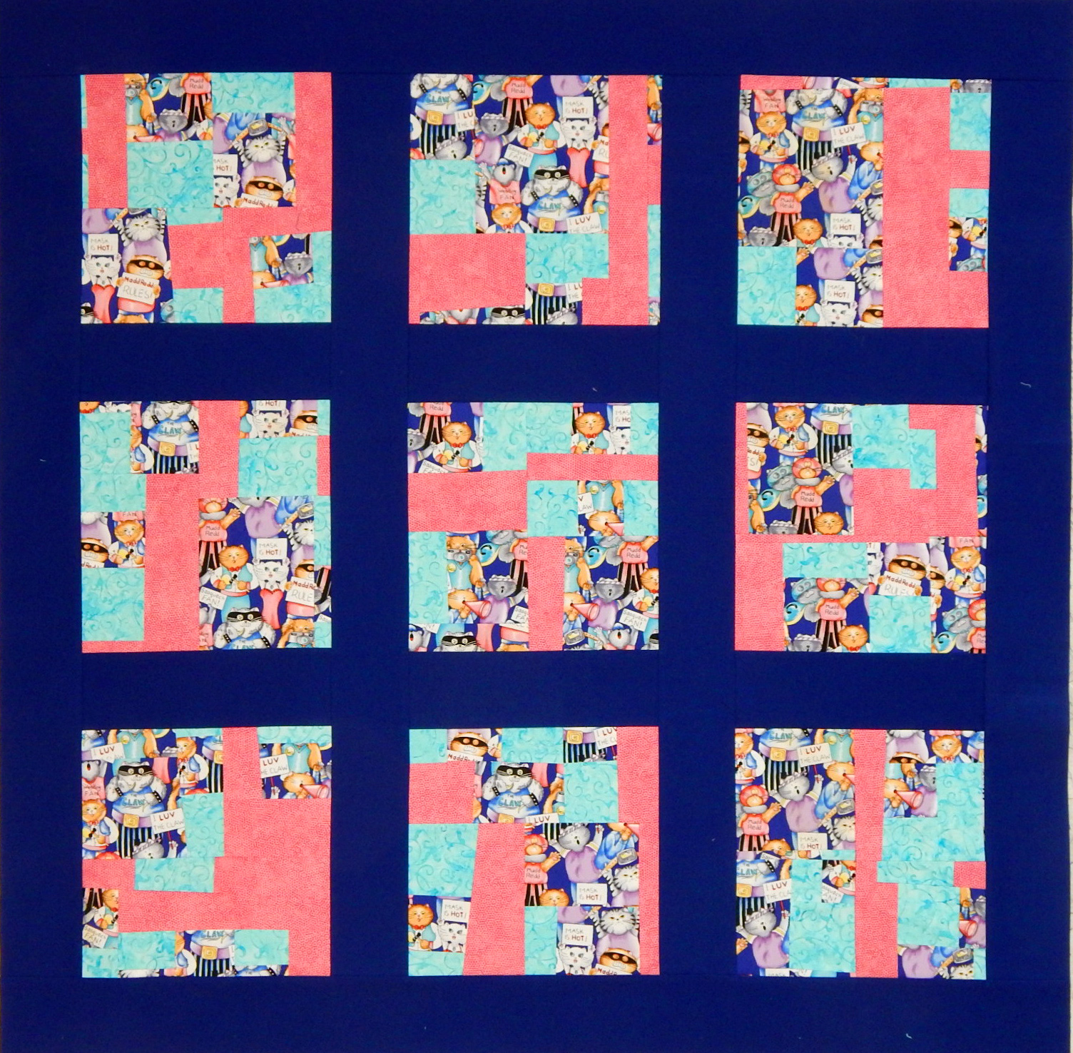 “Color Cascade aka Prints Charming” includes more than 500 scraps. The pattern for this quilt is in the September 2012 issue of American Quilter Magazine. This is machine pieced and machine quilted.