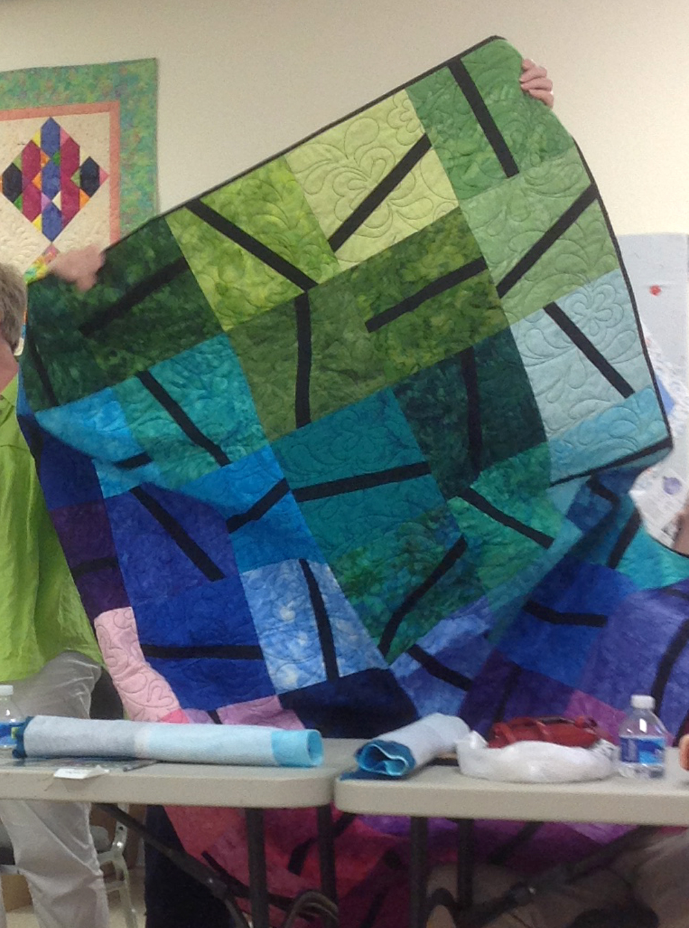 When I discussed the project with my wonderful son-in-law, he helped me turn my blog address into a QR code, too! That’s this blog address you see in the TINY QR code making up one block toward the bottom right of the quilt. Scanning it brings you to this post.