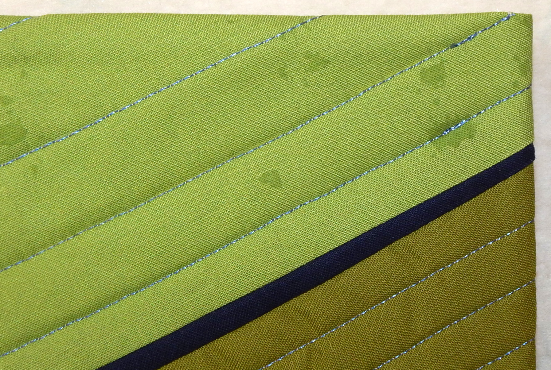 First, I just finished an art quilt that I wanted to face rather than bind. I’ve faced quilts before with variable success, but I wanted a refresher on just how to do it, so of course I did an internet search. I found this great tutorial by Terry Aske and followed it. The quilt came out MUCH better than my previous attempts! The secret is in NOT sewing around the corner and then trying to turn it. Here’s one of my corners.
