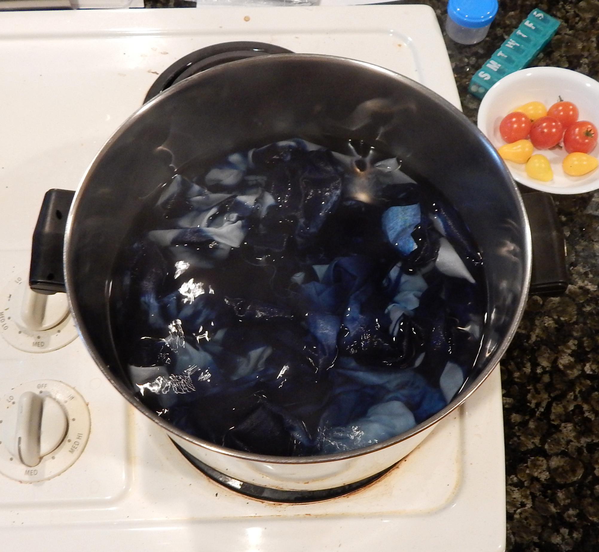 I recently took a one-day class in Shibori dying with natural indigo, taught by Debbie Maddy. This was part of QuiltFest, put on in Jonesborough, TN, by Tennessee Quilts. It was a good time as usual, and I’ll post more about QuiltFest later.