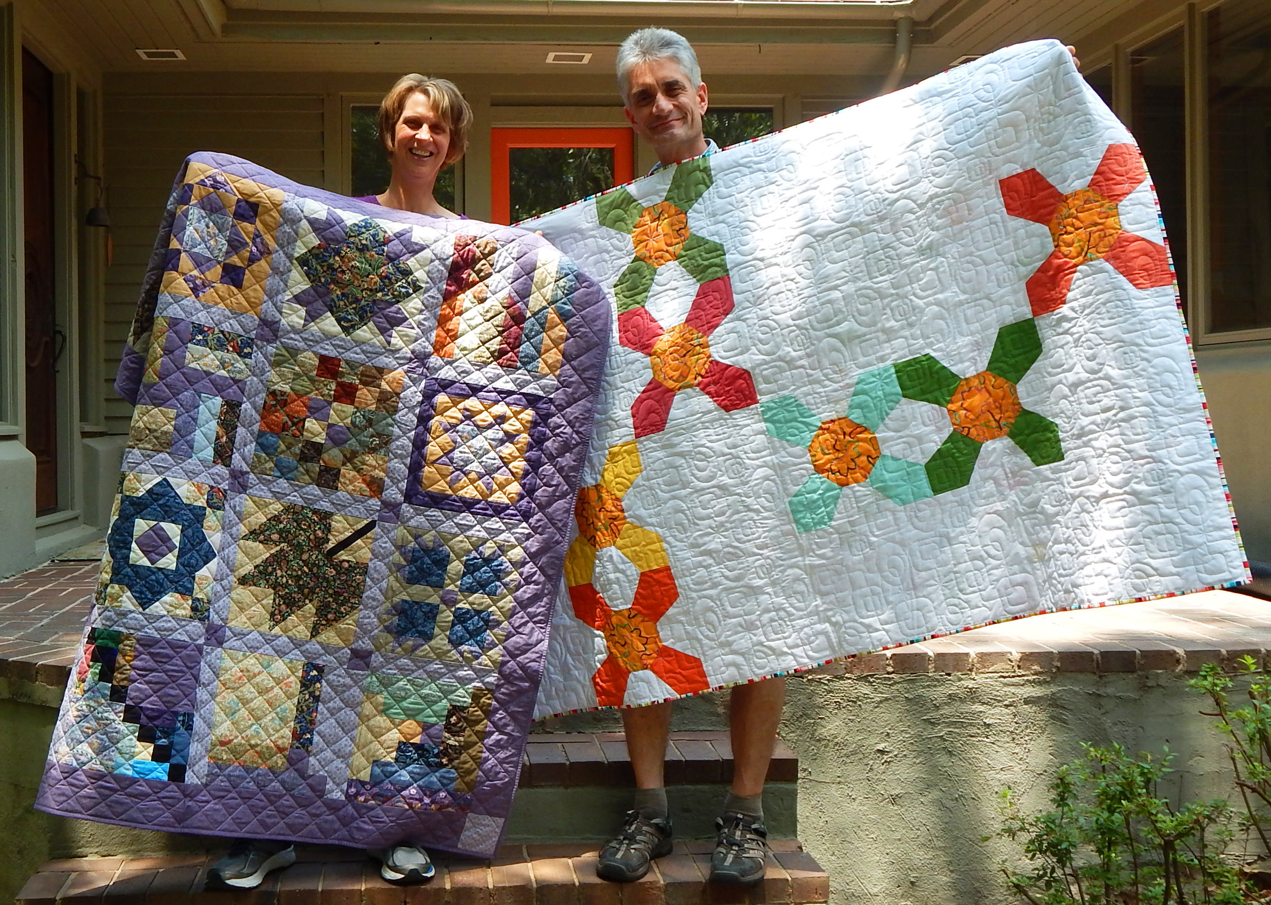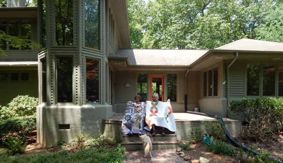 One of the best things about quilting is being able to give quilts to people who will appreciate them. Our friends Jim and Michele recently moved and, when we went to see them and the new house, I took two big piles of quilts so that each of them could choose a quilt to use in their new home.