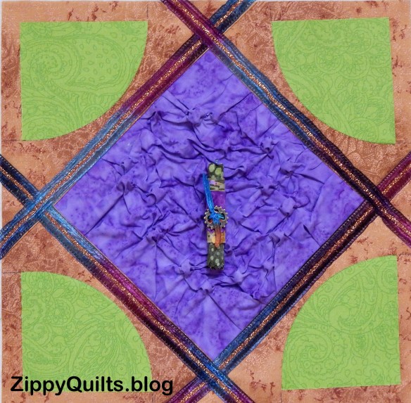 The quilting doesn’t show up much on that busy fabric, so here’s a picture of the finished back: