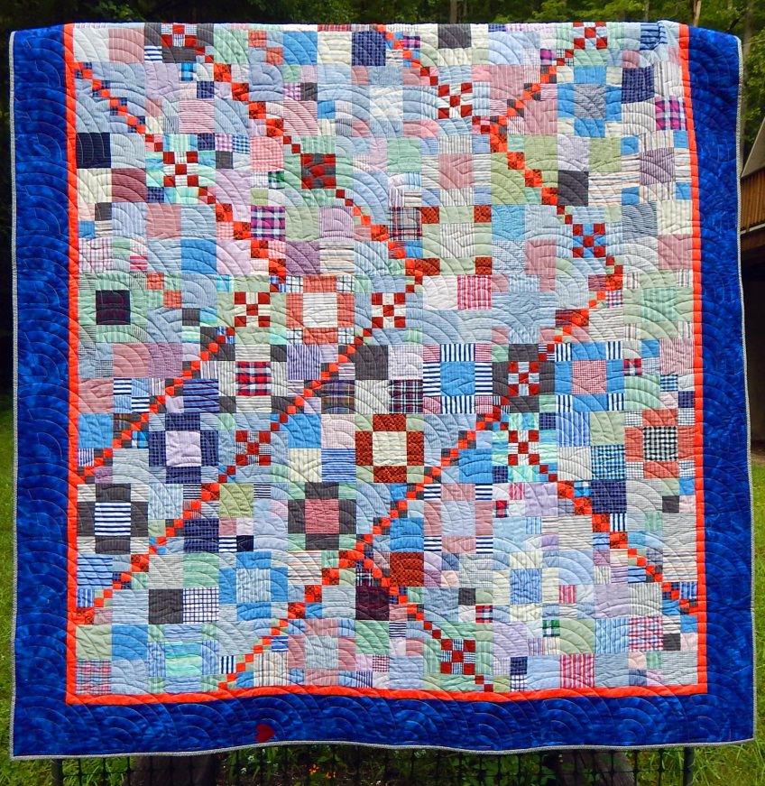 Shirts Published August 7, 2019 at 1986 × 2040 in Scraps Happen, Part I You can find the original pattern for this quilt by going to AllPeopleQuilt.com and searching for the “trail mix” pattern Share this:Tweet Email a link to a friend (Opens in new window) Email Like Loading...