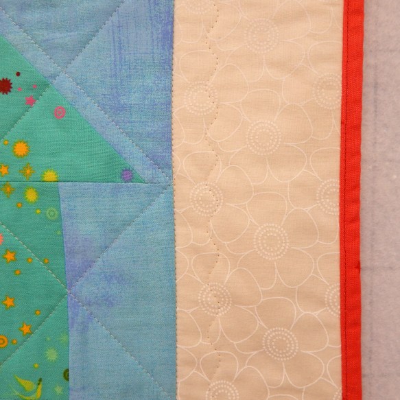 Susan is known for (among other things) her binding techniques, prairie points, and Dresdens. All these involve her signature precision and attention to detail. I used some of her techniques in this little quilt and added several of my own. Here are some details.