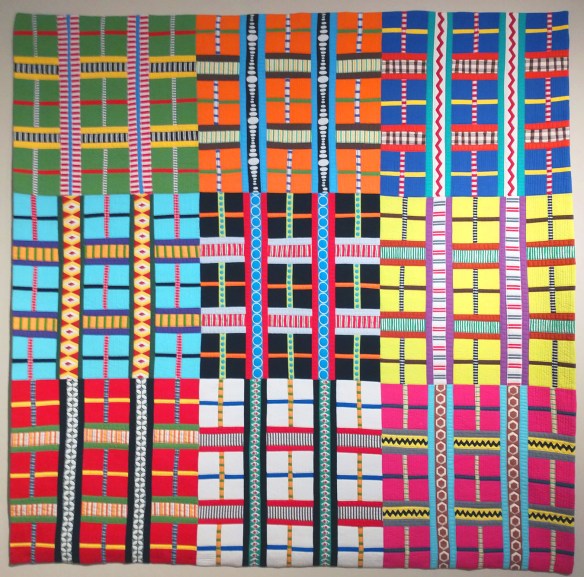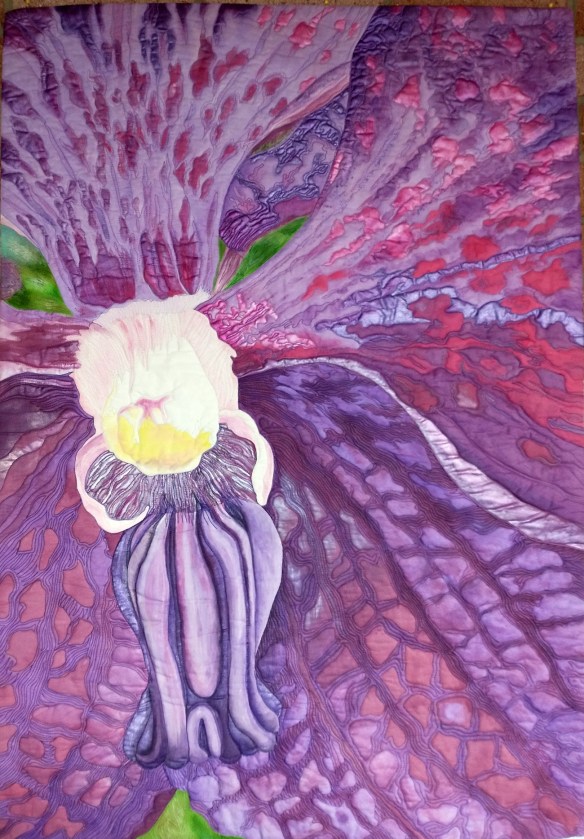 She discussed her methods, which you can read more about on her website. She also hosts Quilting Arts TV, so that’s another useful resource if you’re looking for information on how to make art quilts. A lot of her quilts are whole cloth works, painted with textile paint and then extensively quilted on one of her Bernina machines. The quilts are based on her own photographs, and she often begins by tracing a photo on white fabric.