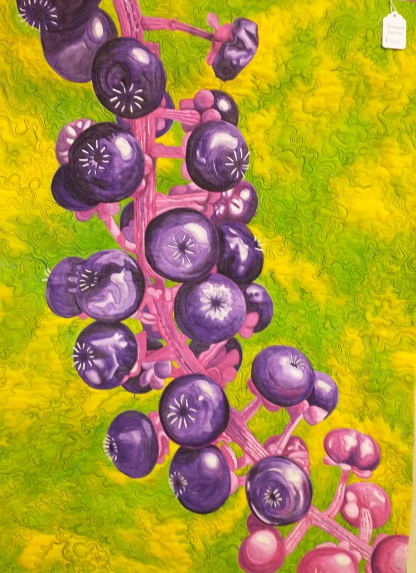 I am in awe of Susan’s detailed work, and it was lovely to get to visit with her. You can find her teaching schedule on her website if you’re interested. When I expressed amazement at her free motion quilting, Susan pointed out that she has thousands of hours of experience with it! Nevertheless, her skill is amazing.