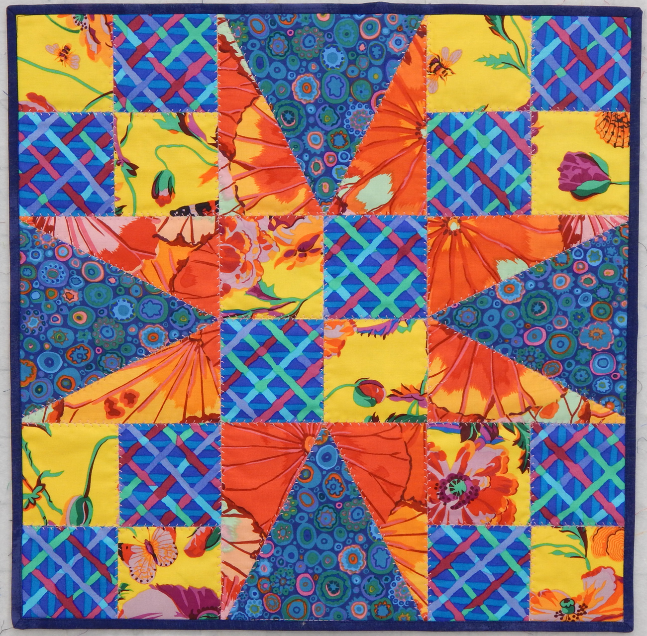 Also from the internet, I somehow decided to enter the current round of PROJECT QUILTING, which you can learn about here. The challenge this week was the “54-40 or fight” block. Here’s my entry, an 18″ mini-quilt.