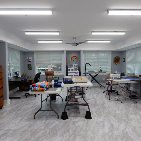 But eventually, the huge stack of fabrics was reduced to a small stack of 6″ strips and the remaining fabrics were put back where they belong.