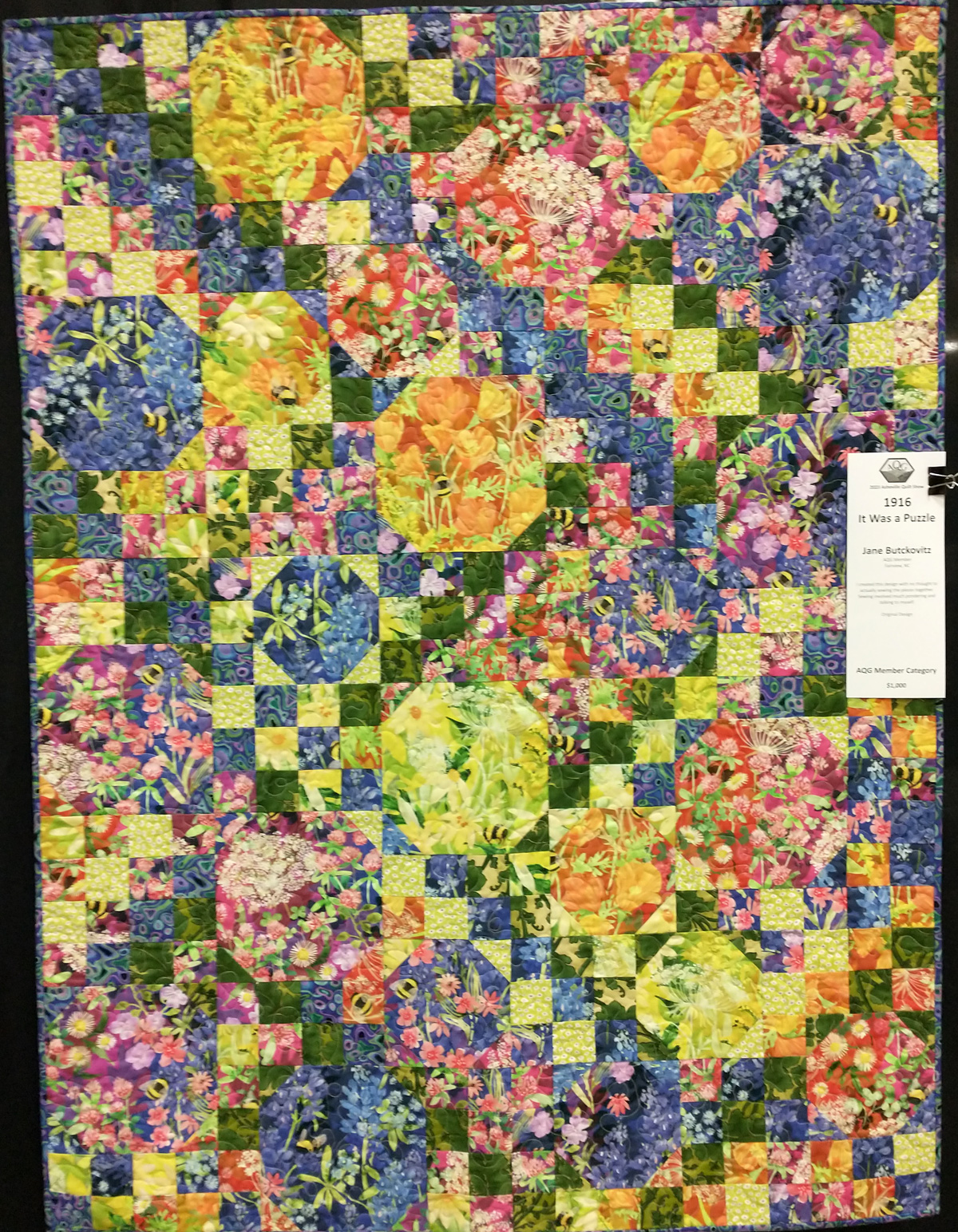 Second is this quilt made last year and entitled Bright Scraps. No pattern; I made it up as I went along.