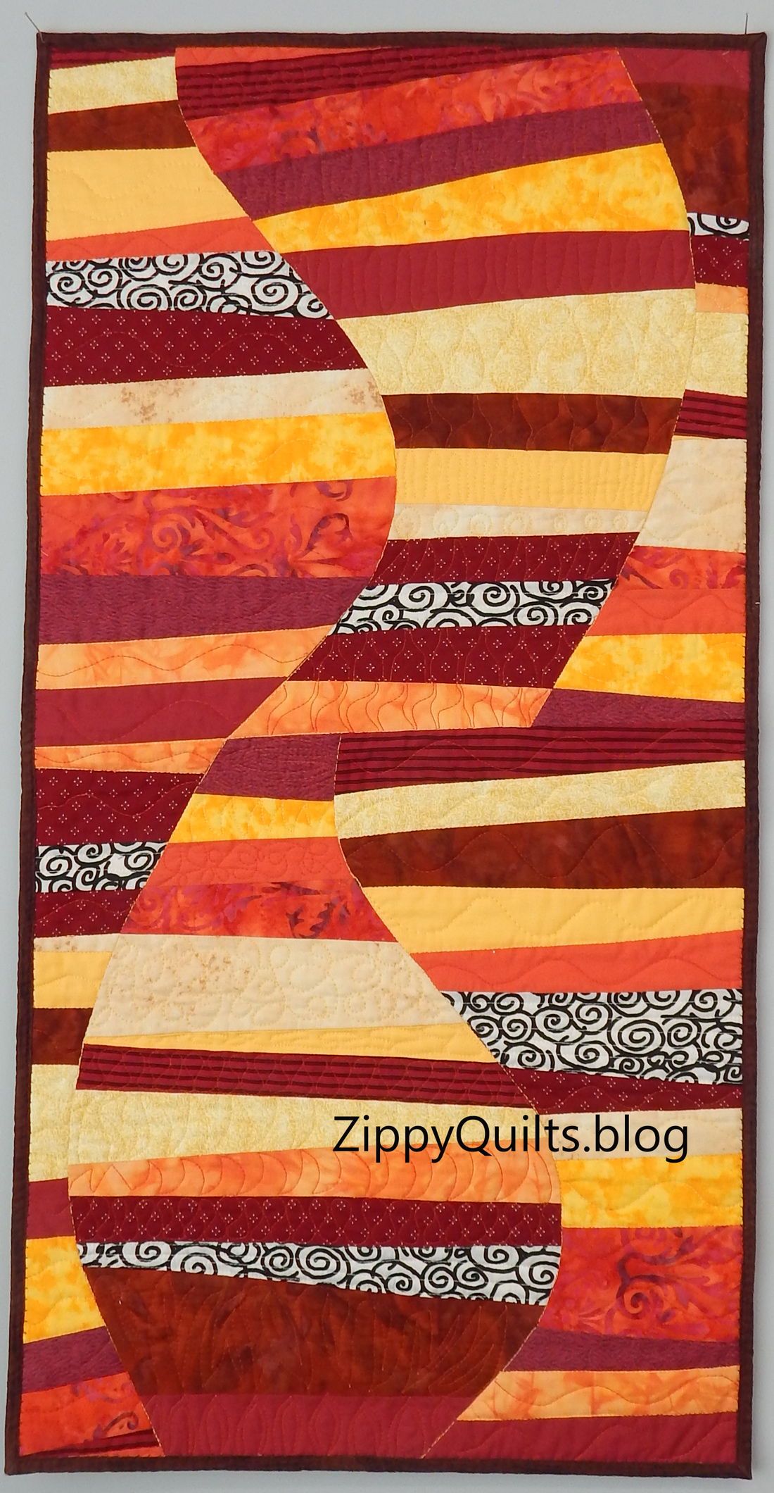 This is the quilt I had published in Quick + Easy Quilts recently, though their quilt was in holiday colors. This is the orange one I made to test the pattern before submitting it. It’s easy and would make a great second quilt for a relative beginner.