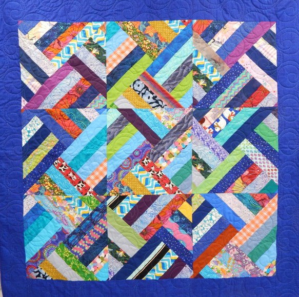 I made this quilt from scraps (of course!) but it could be made from a jelly roll for a more coordinated look.