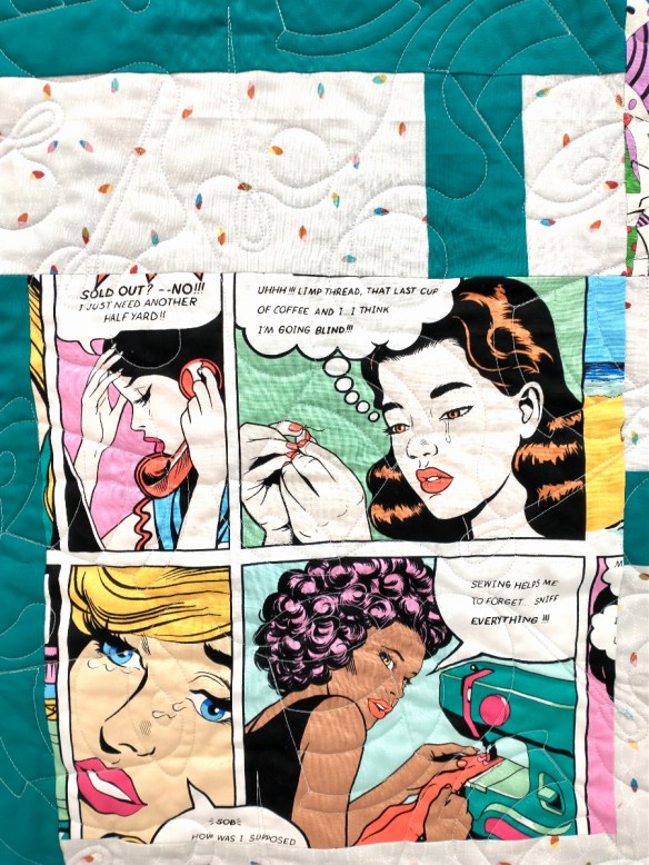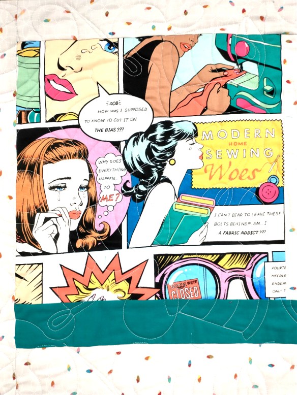 The following day, I cut up and rearranged some of the remaining fabrics, then sewed it up.