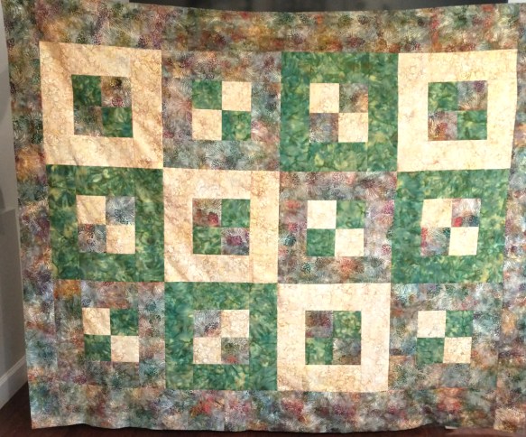 And here’s the quilt top I made from batiks I cut ahead of the retreat. I was able to finish that top and send it home with the friend who will quilt and donate it!