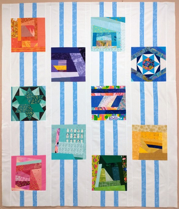 I recently found this pattern from 2014 in my “patterns not yet done” notebook, and it came at a good time. One of the UFO boxes I’m trying to empty contained a set of 12″ scrap blocks, so this patter was just what was needed.