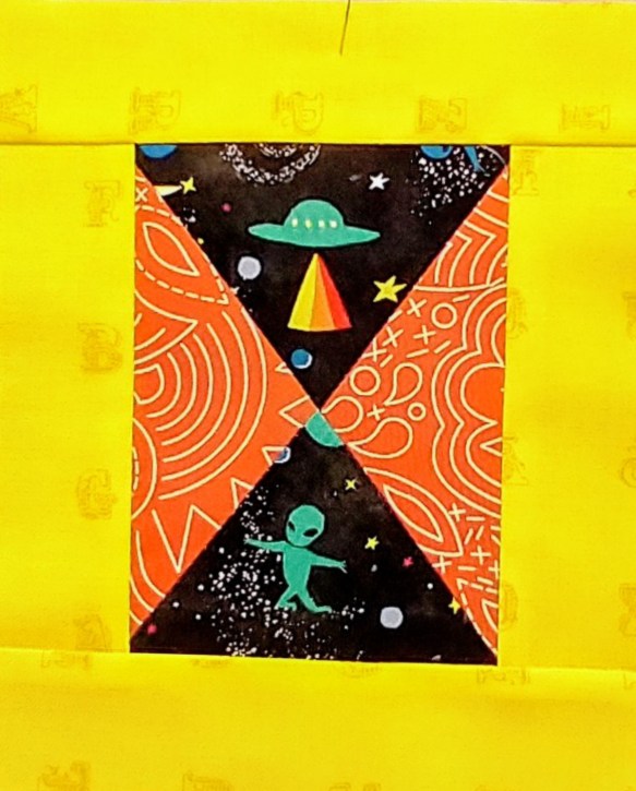 My husband grew up in Roswell, NM, so I include UFO blocks in my quilts whenever possible. And for once it’s “the real” UFO, not the usual UnFinished Object we quilters are familiar with! Even stranger, I recall shelving those books about “The Roswell Incident” when I worked in the library during high school! Interesting how those things come around.
