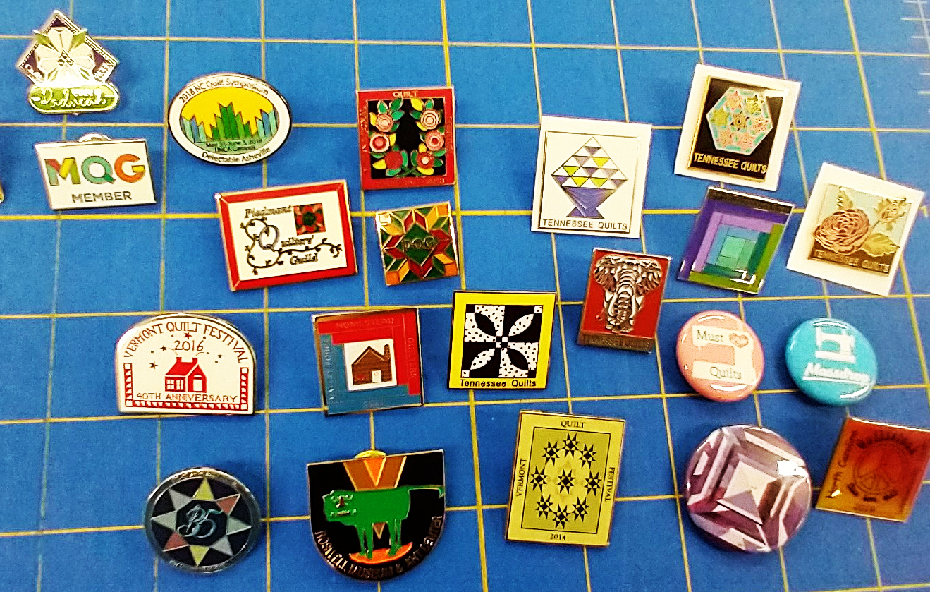 There were all these pins, mostly from QuiltCon in various years, though some from AQS shows as well: