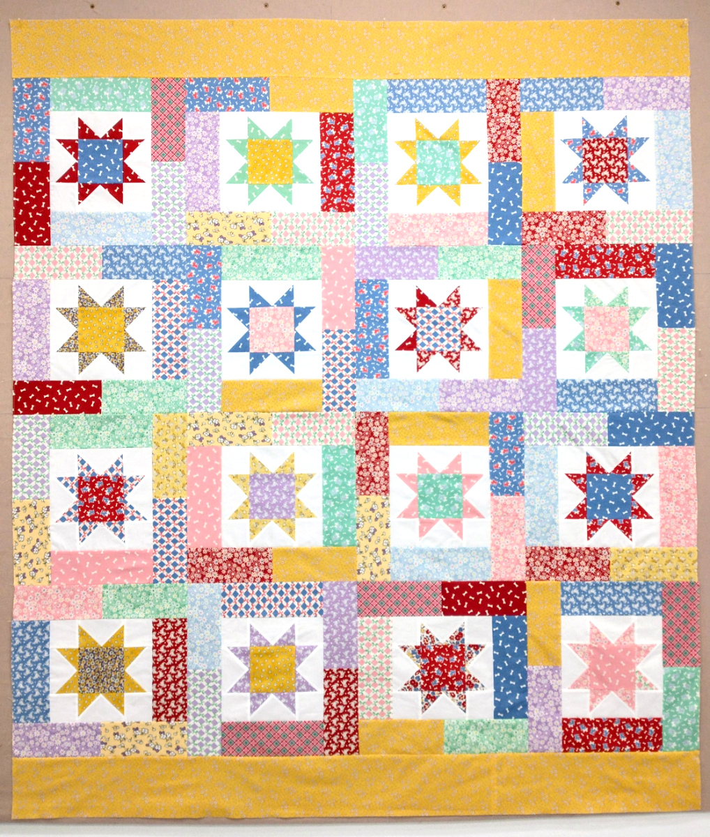 Lucky Stars looks great in 30’s prints. It took me a lot longer than I thought it would to empty the 30’s bin. I put the very last in a box and contributed it to the guild raffle….but somehow there are pieces here and there in my stash.