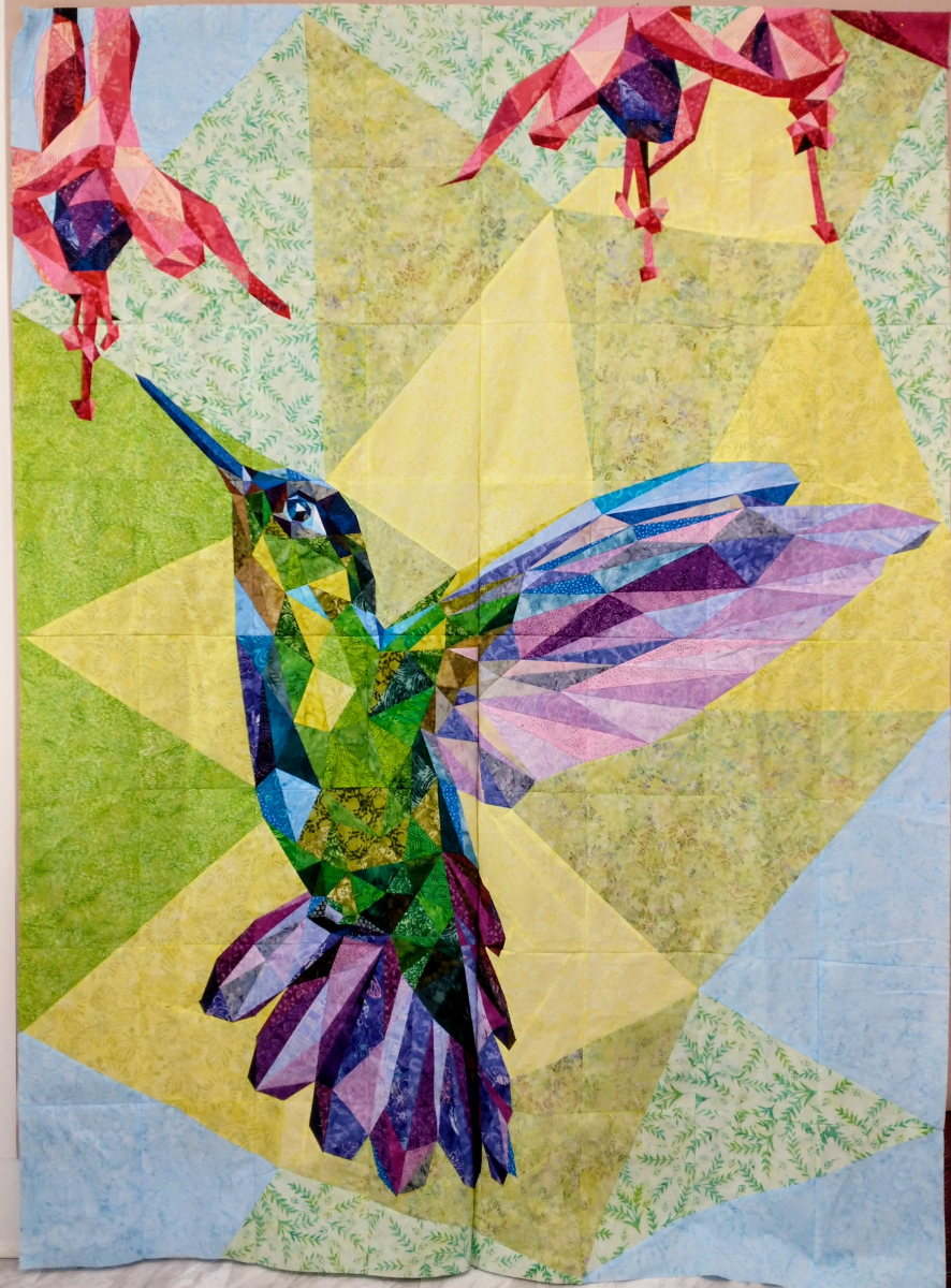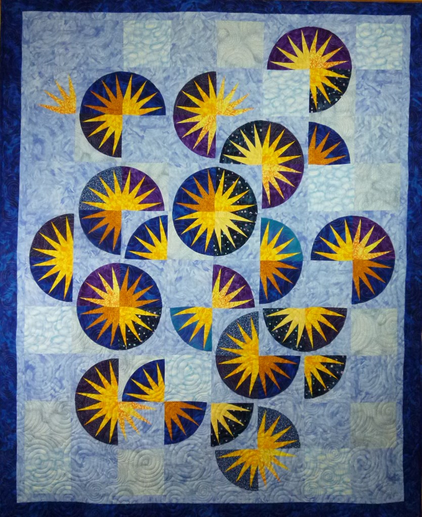 I designed “Spring Sun” using piecing papers from a Judy Niemeyer pattern. It didn’t hang straight, but was accepted at an AQS show anyway.