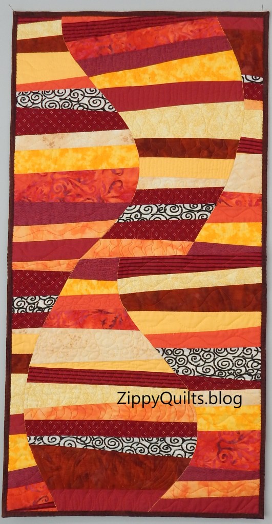 Finally, after debating about what to do, I zig-zagged the edge to finish the quilt. I hope it will enhance someone’s new home.