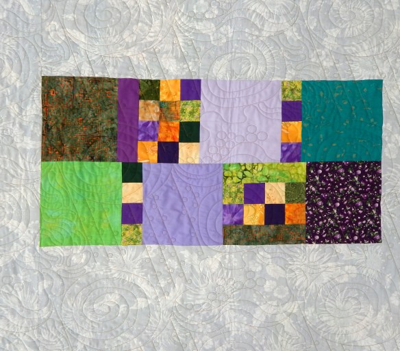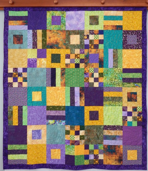 Finally, here is another Circle of Nine quilt using improvisational blocks made from a combination of orphan blocks and scraps.